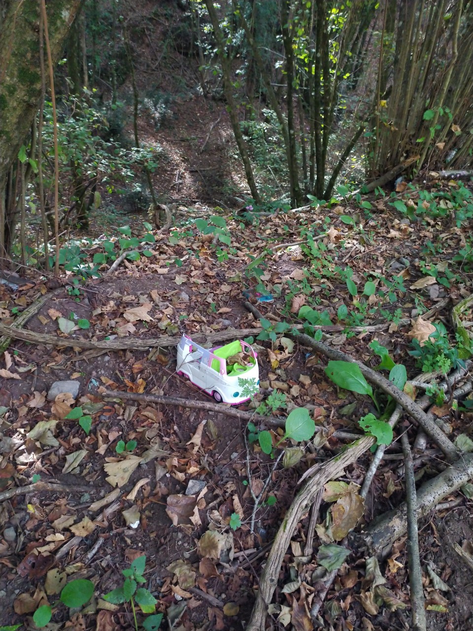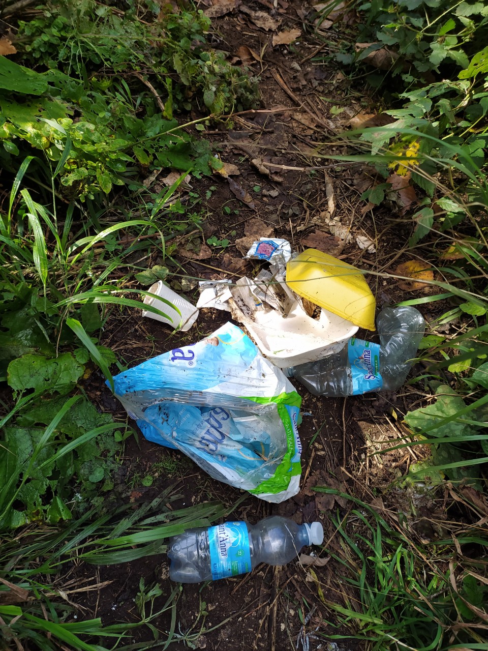 7 sacchi di plastica, uno di indifferenziabile, una latta per l'edilizia, un camioncino giocattolo, un sacchetto di carta e cartone e (sulla fiducia perché erano già in auto al momento della foto) un cesto di bottiglie di vetro.