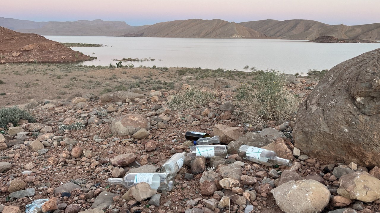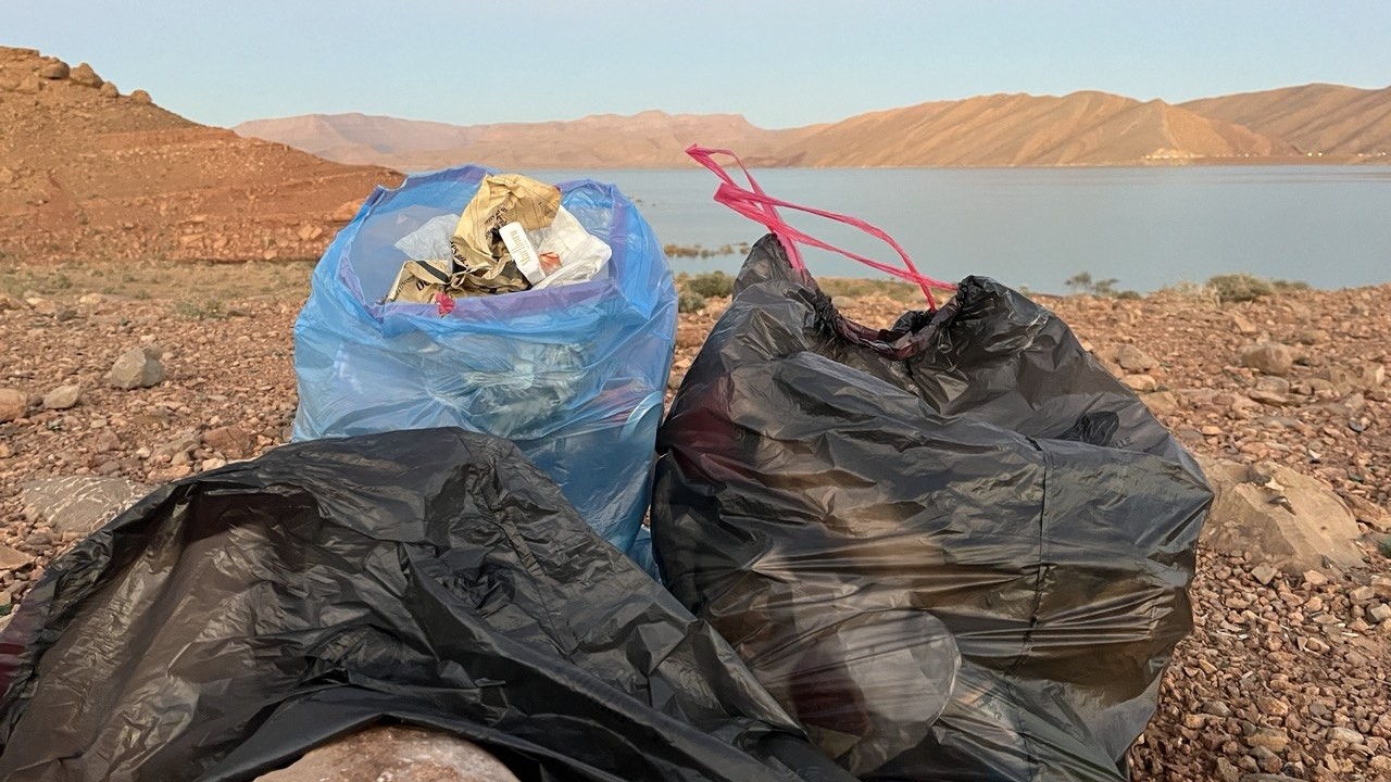 Con i nostri amici Rudy e Daniela, abbiamo dato una bella pulita a questo lago in Marocco che ci ha ospitati per diversi giorni