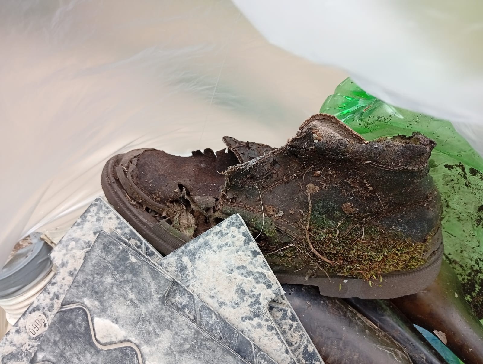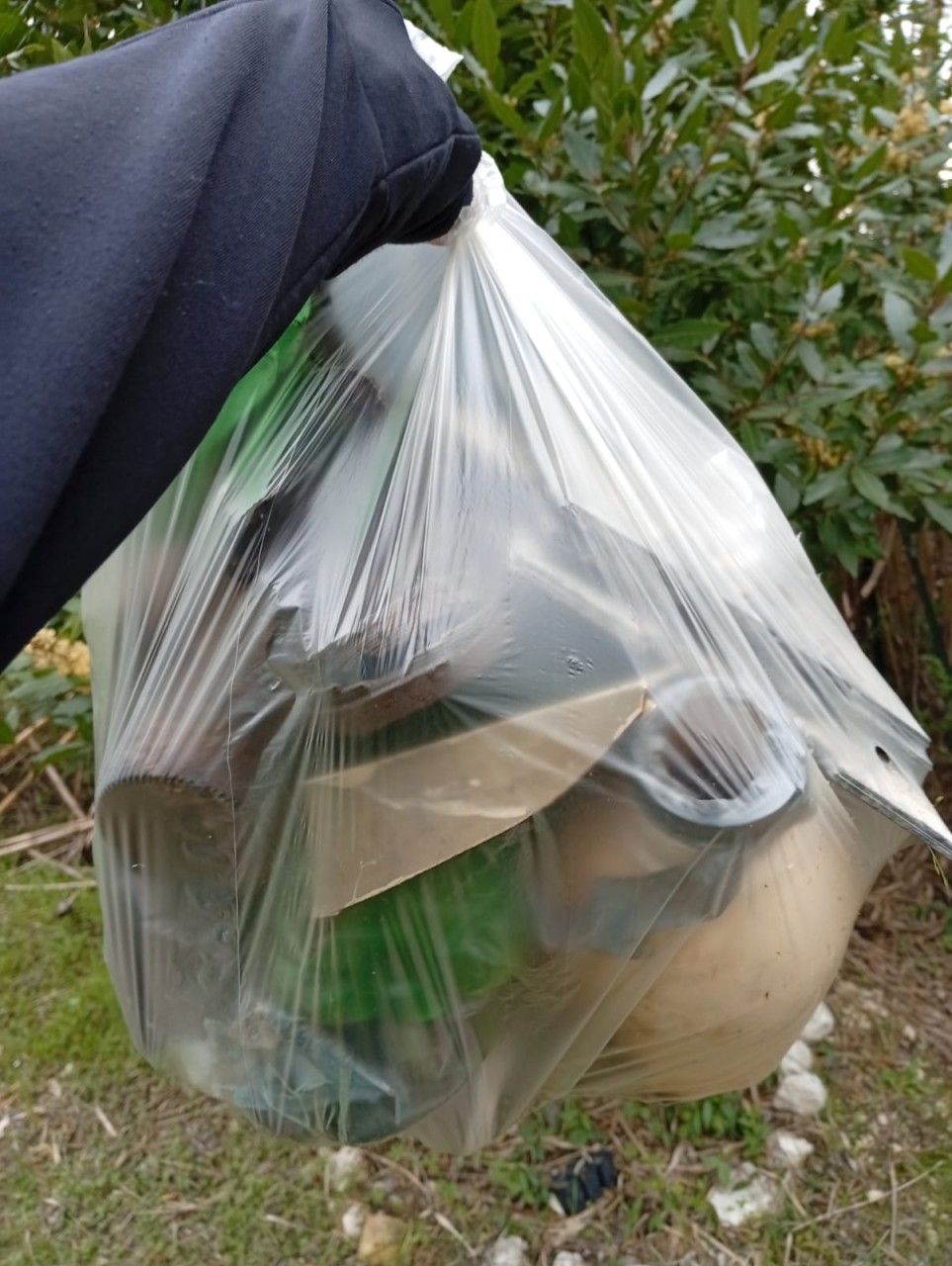 Passeggiata lungo le stradine di campagna e raccolta della spazzatura incontrata sul ciglio della strada