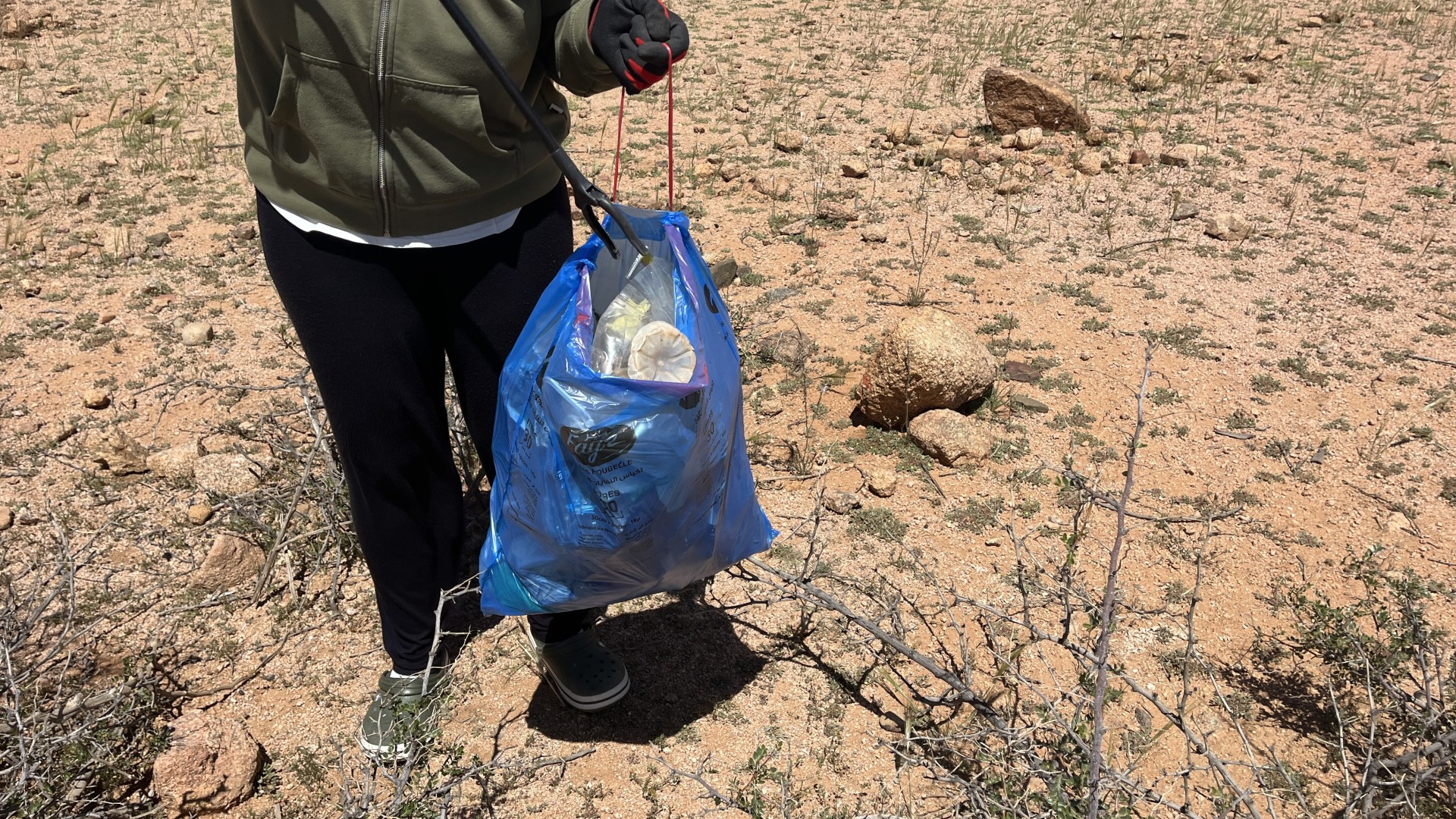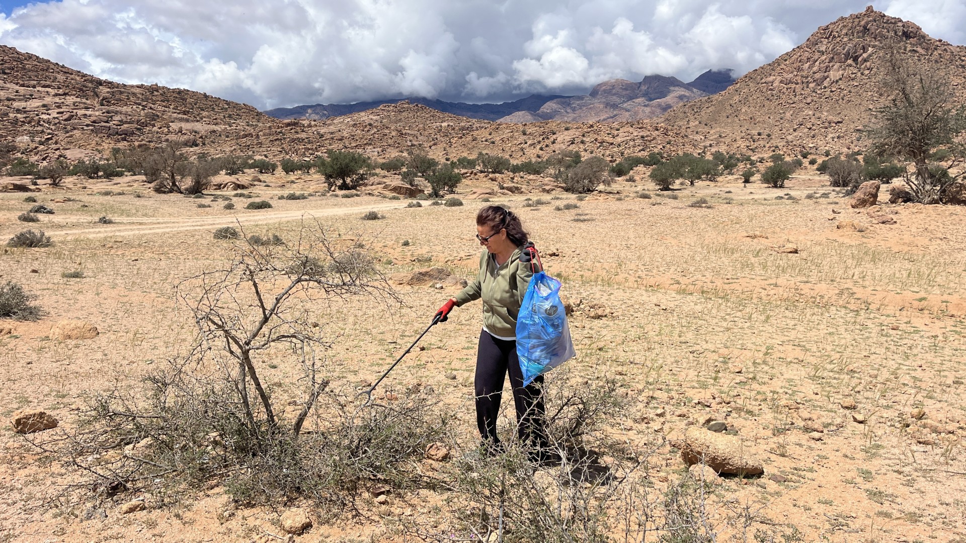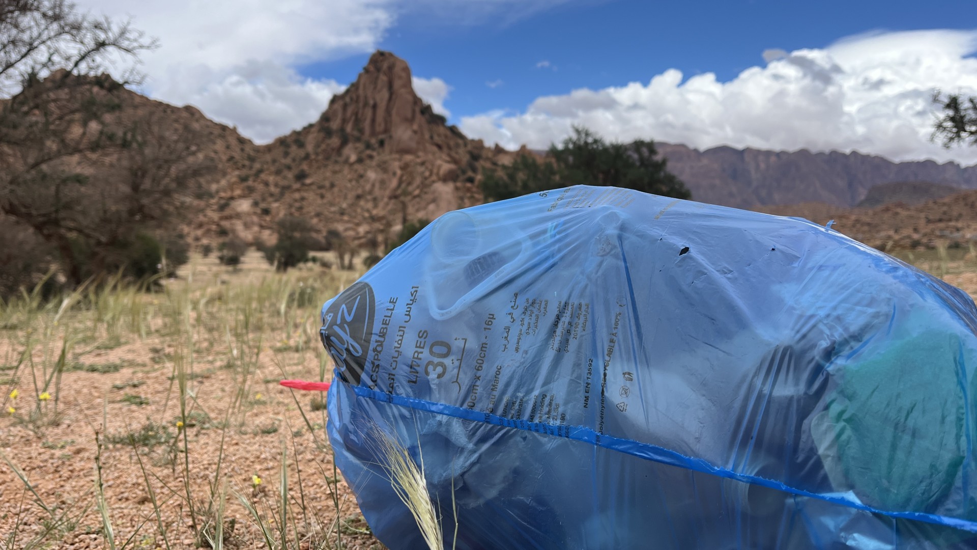 piccola raccolta di rifiuti nel parcheggione di Tafraout che ci ha accolti per diversi giorni